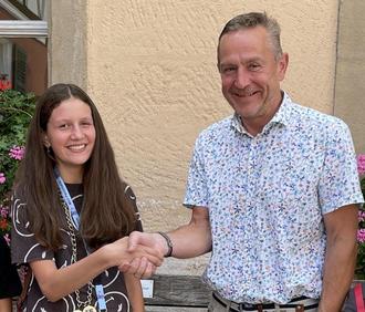 Valentina mit Bürgermeister Udo Schönfelder