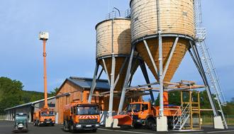 In der Außenlagerfläche lagern tausende Tonnen an Baumitteln wie etwa Steine, Pflaster, Rinnen, Lichtmasten und Bauholz. Im Bauhoflager stehen die Schüttboxen mit Sand, Split, Schotter.