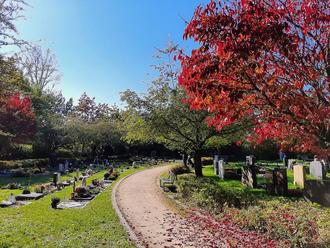 Die Entsorgung von Abfällen auf Friedhöfen, die nicht bei der Pflege und Unterhaltung einer Grabstelle anfallen, ist untersagt. Entsprechend weisen Schilder auf allen städtischen Friedhöfen darauf hin, dass diese illegale Entsorgung von Biomüll zu unterlassen ist. Es sollte zudem selbstverständlich sein, dass Grünabfälle aus privaten Gärten nicht über Abfallcontainer auf Friedhöfen entsorgt werden und schon gar nicht wild abgelegt werden.