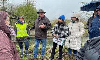„Die Wiese ist die Mutter Ackers“, erklärte Markus Galster, der erläuterte, wie mit einer Intensivierung des Grünlandes auch der Ertrag gesteigert werden kann. „Oberstes Ziel ist es, das Wasser in der Landschaft zu halten“, so Galster. Überdies schaffe man auch ein „Benefit für den Naturschutz“, denn schließlich sind die Wässerwiesen auch Heimat und Brutplatz vieler seltener Vogelarten. Galster zeigte auf, wie Naturschutz und Wasserwirtschaft gemeinsam funktionieren und voneinander profitieren, erklärte den Besucherinnen und Besuchern die Organisation und Finanzierung der Wässergenossenschaft.