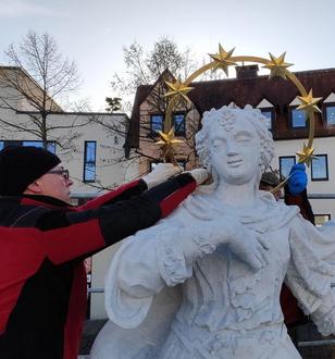 Ein besonderes Highlight der Restaurierung war die Wiederanbringung des Sternen-Nimbus, der mit Blattgold aus der Goldschlägerstadt Schwabach vergoldet wurde.