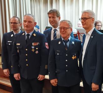 Eine besondere Ehre wurde Ludwig Gügel von der FFW Burk zuteil, der 50 Jahre aktiven Dienst leistete und mit dem großen Ehrenzeichen des Innenministers ausgezeichnet wurde.