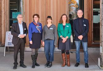 v.l.n.r.: Prof. Dr. Daniel Drascek (Bayerische Expertengremium für das Immaterielle Kulturerbe), Julia Schrade (Internationales Zentrum der Traditionellen Bewässerung in Europa, Stadt Forchheim), Pauline Arnet (Wässerwiesenprojekt Landkreis Forchheim), Annette Friedrich (Bayerisches Staatsministerium der Finanzen und für Heimat), Dr. Helmut Groschwitz (Beratungs- und Forschungsstelle Immaterielles Kulturerbe Bayern)