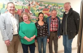 Zu Gast waren v.l.n.r.: Bürgermeister Udo Schönfelder, Organistin Bianca Seidl, Quartiersmanagerin Melanie Schneider, Bewohner Alfons Dorn und Pfarrer Thomas Teuchgräber von St. Martin.