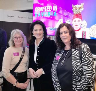 Susanne Fischer (Leiterin des Forchheimer Pfalzmuseums) mit Michaela Kaniber (bayerischen Staatsministerin für Ernährung, Landwirtschaft, Forsten und Tourismus) sowie Christina König (stellvertr. Museumsleiterin) bei der Bekanntgabe der Ausstellung im Deutschen Museum München.
