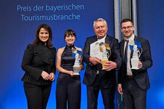 (v. l.) Staatsministerin Michaela Kaniber gemeinsam mit den TouBy-Preisträgern Julia Staudinger, Dietmar Hozapfel und Nico Cieslar bei der Preisverleihung in Berlin.