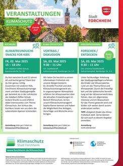 Am 03. Mai 2025 findet in Forchheim der Earth Day unter dem Motto „DU machst den Unterschied“ statt. Zahlreiche Vereine und Geschäfte haben sich erneut zusammengeschlossen, um ein buntes und abwechslungs-reiches Programm für Groß und Klein zu gestalten. Die Besucher*innen können sich auf spannende Aktionen für Kinder, die Möglichkeit, nachhaltig einzukaufen, sowie Initiativen zur Lebensmittelrettung und Umwelt-bildung freuen.