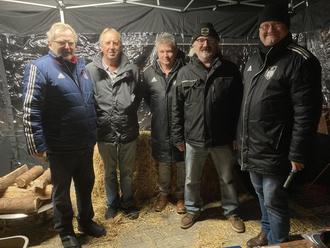Spendenübergabe für die Jugendarbeit der Fußballvereine: (von links nach rechts) Hermann Lühr, Franz Zilbauer (DJK Seugast), Jürgen Grundler, German Sternkopf (FC Freihung) und Bürgermeister Uwe König.