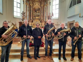 Wie in den letzten Jahren schon zur Tradition geworden, gestalteten die Musiker vom Vilsblech, Thomas Kirchner, Josef Göttlinger, Reinhard Wiesneth, Lue Nettl und Hans-Jürgen Weiß, am 3. Advent (Gaudete) den Sonntagsgottesdienst. Mit wunderschönen Liedern und Melodien erfreuten sie die zahlreichen Besucher der Messe. Pfarrer Benny Joseph bedankte sich zum Abschluss sehr herzlich und bat um eine Zugabe, die die Musiker mit dem Lied „ A Weihnacht wie`s früher war“ gerne erfüllten. Die Gottesdienstbesucher bedankten sich mit lang anhaltendem Applaus. Wir freuen uns schon auf nächstes Jahr.