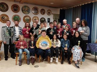 Zuerst erfolgte durch Jugendleiter Erhard Fellner und Jugendleiterin Sandra Ertl die Ehrung der Jugendlichen. Vereinsmeister Lichtgewehr: Rebecca Ertl (374 Ringe) vor Zoey Mayer (337 Ringe) und Melvin Lohr (306 Ringe) sowie Vereinsmeister Jugend: Marlies Döbereiner (357 Ringe) vor Simon Ertl (288 Ringe) und Mensur Hodzic (284 Ringe).