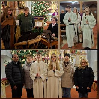 Die Messe wurde von Rita Butz und den Stauber-Moidln auf außergewöhnlich schöne Weise musikalisch umrahmt. Mit ihren klaren Stimmen und den besinnlichen Liedtexten, die von den Klängen von Zither, Harfe und Hackbrett begleitet wurden, gelang es den Musikerinnen, die Anwesenden in eine friedvolle und meditative Stimmung zu versetzen. Die Musik entführte die Gläubigen in die besinnlichen letzten Tage des Advents und stimmte sie wunderbar auf das bevorstehende Weihnachtsfest ein.