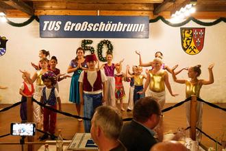 Gestärkt folgten Aufführungen der einzelnen Turngruppen. Die Übungsleiterinnen Maja Schertl und Angela Luber übernahmen federführend die Organisation der Tänze und übten zum Teil gruppenübergreifend diverse Einlagen ein, die eine Kombination aus Tanz und Akrobatik waren. Die Aerobic- und Jugendgruppe eröffnete mit einem Tanzremix gefolgt von der Kinder- und Jugendgruppe, die das Publikum mit einem Mottotanz „1001 Nacht“ begeisterten. Die Frauengruppe überzeugte zum Abschluss mit ihrem Tanz zu „Tulpen aus Amsterdam“. Die begeisterten Zugaberufe zeigten, dass die Aufführungen super bei den Festgästen ankamen.