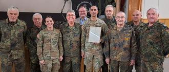 Standesgemäß verabschiedete die Reservistenkameradschaft Freihung den scheidenden Kompaniefeldwebel First Sergeant Justin L. Kassam von der Partnerschaftseinheit, 702. EOD. Im Bild von links: Feldwebel d.R. Johann Rötzer, Stabsunteroffizier d.R. Johann Schmidschneider, Captain Amelia Appell, Oberstleutnant d.R. Norbert Bücherl, Bürgermeister Uwe König, First Sergeant Kassam, Stabsunteroffizier d.R. Klaus Paa, Stabsfeldwebel d.R. Gerhard Lindthaler, Hauptgefreiter d.R. Werner Wiesneth, Oberstleutnant d.R. Werner Gebhard