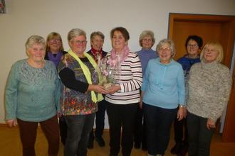 Die Vorsitzende Högen dankte der aus gesundheitlichen Gründen ausscheidenden Geschenkefrau Emma Kummer für ihre 18 Jahre mit Freude ausgeübte Tätigkeit. Deren Nachfolge tritt Elisabeth Behncke (hinten 2.v. re.) an. Links Neumitglied Uschi Grundler. Bildbericht : Siegfried Bock