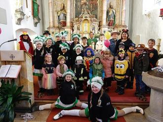 Die Kinder freuten sich, mit Verkleidungen in den Familiengottesdienst in Großschönbrunn kommen zu können. Und auch die Kindergarde „Kleinseugastanien“ sorgte mit ihrem prächtigen Outfit für Faschingsflair.