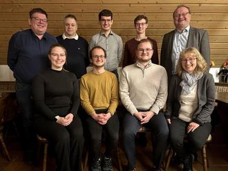 Bildunterschrift: Mitglieder der neuen Vereinsleitung. Hinten v.l.n.r.: Martin Poß (Kassier), Thomas Nübler, Christoph Freimuth (beide Beisitzer), Christopher Fenk (Jugendvertreter), Uwe König (1. Bürgermeister, Beisitzer Partner). Vorne v.l.n.r.: Hanna Wisneth (Jugendvertreter), Markus Büttner (Schriftführer), Timo Häusler (1. Vorsitzender), Christiane Regn (Beisitzer)