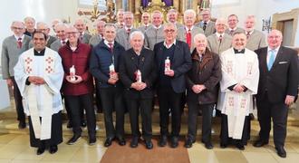 Die Jubilare mit Kerze von links: Thomas Fenk, Josef Pamler, Johann Rumpler, Georg Fritsche