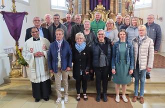 Pfarrer Benny Joseph freute sich in seiner Begrüßung, dass wir auch heuer wieder das Hochfest der Marianischen Männer-Congregation in der Pfarrkirche begehen können. Georg Fritsche überbrachte die Grußworte und guten Wünsche von unserem Zentral-Präses Bischöflich Geistlichen Rat Markus Brunner und unserem Präfekten Michael Koller aus Amberg. Ein weiterer herzlicher Gruß ging an Franz Böhm und Fritsche freute sich außerordentlich über den Zuwachs der MMC in der Pfarreiengemeinschaft Freihung/Großschönbrunn. Fritsche führte weiter aus, dass es in einer Welt, die uns oft vor große Herausforderungen stellt, hoffnungsvoll ist, dass wir uns von der Gottesmutter Maria als Vorbild in Treue und Hoffnung leiten lassen dürfen. Bei den Fürbitten, vorgetragen von Lektorin Birgit Koppmann, wurden abwechselnd Kerzen am Marienaltar entzündet und der Kirchenchor umrahmte dies mit einem wunderbaren „Mutter ‚Gottes, wir rufen zu dir!“ Neben der Freude über die Neuaufnahme gab es aber auch einen Grund zur Trauer. Seit der letzten Weiheerneuerung, verstarb 2024 unser ehemaliger Ortspräses Bischöflich Geistlicher Rat Bernhard Huber. Nach einer kurzen Besinnung wurde das Weihegelübte gemeinsam von den Sodalen erneuert.