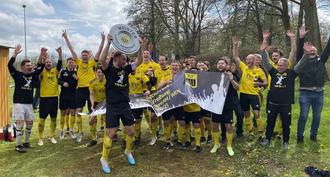 Die Aufstiegsmannschaft mit den beiden Spielertrainer Patrick Walzel (5. v. rechts) und Viktor Schuppe (2. v. links).
