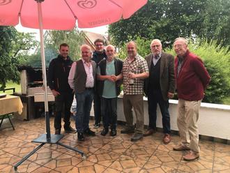 Für die Gratulanten war es ein kurzweiliger, niederschlagsloser Grillabend bei unbeständigem Wetter mit netten Geschichten über Klaus, seine Familie, Haustiere vom Schäferhund bis zum Papagei und Vereinsgeschichten.