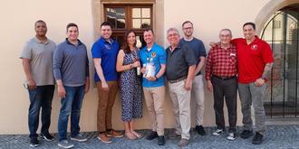 Vor dem alten Rathaus in Grafenwöhr verabschiedete die Reservistenkameradschaft Freihung den stellvertretenden Bataillonskommandeur, Major Sean Barton, vom Partnerschaftsverband 18. Combat Sustainment Support Battalion. Im Bild v.l.n.r.: CSM Donald Glover, Col Mathew Alexander, LtCol Nicholas Gauvin, Ehepaar Claire und Sean Barton, 1. Vorsitzender Norbert Bücherl, 3. Vorsitzender Dominik Falk, 2. Vorsitzender Gerhard Lindthaler und CSM Jason Towns