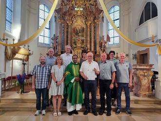 Von links nach rechts: EB-Vorsitzender Tobias Krapf, KV-Mitglied Heinz Peter Ertl, Kiga-Leitung Christine Götz, KV-Mitglied Georg Schirbl, Pfarrer Benny Joseph, PGR-Sprecherin Karin Amann, Eduard Neydert, Kirchenpfleger Josef Amann, Pfarrsekretärin Stephanie Lederer, KV-Mitglied Hans Rumpler, (Wolfgang Harrer nicht auf Foto)