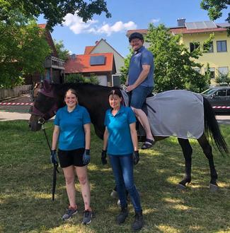 Selbst der erste Bürgermeister Uwe König ließ es sich nicht nehmen hoch zu Roß seine Runden zu drehen. v.r.n.l. 1. Vorsitzende RSG Großschönbrunn-Seugast e.V. Christa Bauer, Pferdebegleiterin Franziska Hager