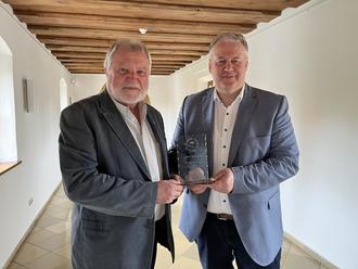Hartmut Schendzielorz bedankte sich seinerseits beim Landrat für die Unterstützung des EJPO in all den Jahren und überreichte ihm eine Ehrengabe.(Text: Christine Hollederer, Landratsamt Amberg-Sulzbach)