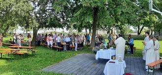 Einen besonderen Gottesdienst feierte die Pfarrei Großschönbrunn am Fest Aufnahme Mariens in den Himmel. Bei bestem Wetter zog Pfarrer Benny zusammen mit den Ministranten in das „Gotteshaus von Mutter Natur“ ein.