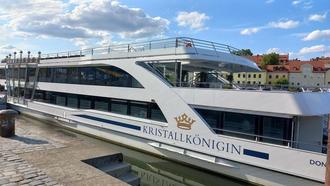 Nach der freundlichen Begrüßung durch den Kreuzfahrtdirektor setzte sich das Schiff in Bewegung. Durch die raumhohen Panoramafenster zog ruhig die Landschaft vorbei. Man genoss die Aussicht auf die Dörfer am Ufer und die kleinen Inseln im Fluss mit ihrer bunten Vogelwelt. Ein markanter Aussichtspunkt war u. a. die Walhalla.