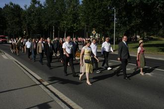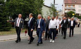 Bürgermeister König und Schirmherr Füracker mit den Ehrengästen auf dem Weg zur Festgasse