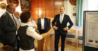 Ein Eintrag ins goldene Buch der Marktgemeinde Freihung gehörte für den Minister ebenso zum Programm wie eine Führung durch die Ausstellung. Nach der Eröffnungsrede durch Bürgermeister Uwe König führte das Team mit Elisabeth Kummer, Josef Roider und Herbert Koppmann durch die Ausstellung. Einen Überblick zur Orientierung über die Aufteilung der gezeigten Schätze gab Annette Rauscher.