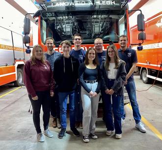 Das Leitungsteam der Langweider Jugendfeuerwehr (v. l. n. r.): Jugendwartin Sabrina Dehm, Jugendwart Dominik Greppmeier, Kassenprüfer Johannes Steppich, Kassenwart Tobias Eser, Kassenprüferin Vivien Everett, Jugendsprecher Stefan Kopold, Jugendsprecherin Katharina Kopold und Jugendwart Simon Strempfl
