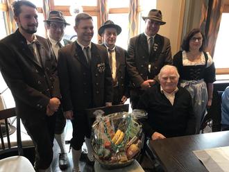 Gründungsmitglied, Kassierer, 33 Jahre erster Vorstand, seit 1998 Ehrenvorstand, Josef Baur sen. und Grünholder Gablingen sind nicht voneinander zu trennen. Jetzt feierte der Rentner seinen 95. Geburtstag und der Schützenverein gratulierte. Drei Böllersalven gab es zu seinen Ehren, ein Geschenkkorb durfte natürlich auch nicht fehlen, liebevoll gestaltet auch mit gablinger Spezialitäten von der zweiten Vorständin Margit Link. Diese ließ es sich auch nicht nehmen, eine kleine Ansprache zu halten. Schon wieder eine Laudatio? Margit war der Meinung, dass das schon langsam langweilig wird. So hat sie sich entschlossen, einfach einmal ins Geburtsjahr des Ehrenvorstands. Erster Transatlantikflug, Landung auf der Zugspitze mit einer 20PS - Maschine, Erfindung des Penicillin, erste Funksprechverbindung von Deutschland in die USA, Micky Maus erblickt das Licht der Welt.... Die Gäste, besonders die Jüngeren, staunten nicht schlecht, was der Jubilar schon so alles erlebt hat. Dieser nahm sichtlich erfreut die Glückwünsche „seiner Schützen“ entgegen.