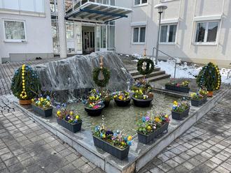Wir begrüßen den Frühling am Rathausbrunnen, der in eine blühende Osterlandschaft verwandelt wird. Anschließend gibt es im Rathaus mit Sitzgelegenheiten einen Kaffee- und Kuchenverkauf für alle Besucher.