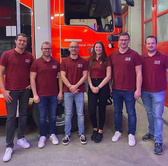 Die Kommandanten und die drei Jugendwarte (v. l. n. r.): Stv. Kommandant Simon Strempfl, Kommandant Christian Steiner, die beiden neuen Jugendwarte Markus Hochhuber und Carina Kopold, Stv. Kommandant Thomas Hörmann sowie Jugendwart Markus Urbanski.