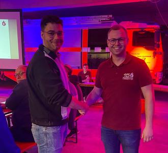 Kommandant Christian Steiner (rechts) gratuliert dem neugewählten Vertrauensmann Lukas Weishaupt.