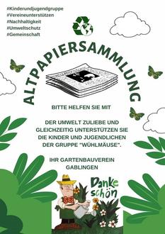 Am Samstag, 11. Mai 2024 führt der Gartenbauverein in den Ortsteilen Gablingen und Siedlung wieder eine Altpapiersammlung durch.