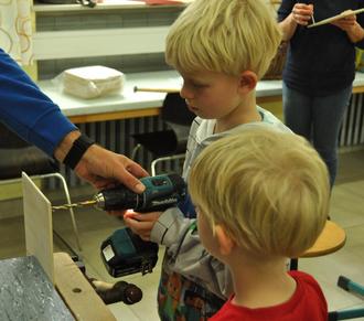 Den größten Spaß hatten die Kids beim Bohren mit dem Akkuschrauber, wobei sie natürlich auch ihre handwerklichen Fähigkeiten unter Beweis stellen konnten.