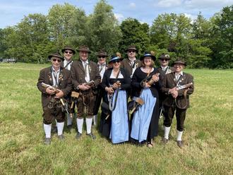 Grünholder Schützen, das ist nicht nur sportlicher Erfolg, auch im Brauchtum ist der gablinger Schützenverein aktiv engagiert. So haben die Schmuttertaler mittlerweile auch eine stattliche Böllertruppe. Nicht nur bei Dorffesten, Hochzeiten, runden Geburtstagen aber auch Beerdigungen unterstreichen die Traditionsschützen den festlichen Rahmen, die Gablinger engagieren sich auf bei Böllertreffen. So auch vergangenen Samstag, als der Schützenverein Kadeltshofen anlässlich ihres 75jährigen Gründungsfestes das "süddeutsche Böllertreffen" ausrichtete. 750 Schützen trafen sich in den kleinen Dorf bei Pfaffenhofen an der Ilm, um mit ihren Hand- und Schaftböllern, Kanonen und Standböllern gemeinsam ihr Hobby zu zelebrieren. Gablingen war mit 9 Schützen mit dabei, als auf einem großen Feld gemeinsam 6 verschiedene Schussfolgen angesagt wurden. Reihenfeuer. langsam, schnell und auch mal gegenläufig - Doppelschlag, Flächenfeuer, Salut. Das sind so die gängigen Kommandos bei solch einem Böllertreffen.