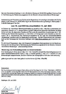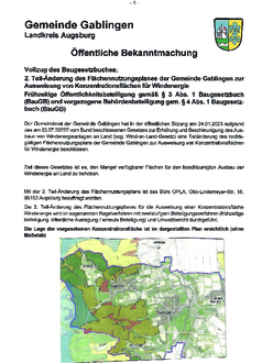 2. Teil-Änderung des Flächennutzungsplanes der Gemeinde Gablingen zur Ausweisung von Konzentrationsflächen für Windenergie