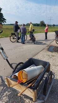 Am Samstag, 08.06.2024 konnten geschichtlich Interessierte an einer kleinen Radtour teilnehmen, die sie an sechs verschiedene Orte rund um Gablingen führte, an denen archäologische Grabungen durchgeführt wurden. Angeführt wurde die Radtour von der Leiterin des Gablinger Archäologischen Museums Gudrun Nitsch. Sie hat an allen gezeigten Orten - dem Kühberg Nord und Süd, dem Trentelberg, dem Führsaumfeld, dem Kirchberg und der Alten römischen Heerstraße - selbst mitgegraben, Zeichnungen und Fotos angefertigt und erzählte sehr anschaulich über lustige und spannende Vorkommnisse. Die Teilnehmer lauschten gebannt den kurzweiligen Erzählungen und die Zeit verging wie im Flug. Gudrun Nitsch und ihr Team haben diese Radtour bereits zum 2. Mal veranstaltet und freuten sich sehr über die große Resonanz und die Fragen von Jung & Alt. "Ganz wichtig ist, dass wir Älteren die Jugend für unsere Geschichte begeistern, von der noch so viel ganz nah vor der Haustür liegt", so Gudrun Nitsch.