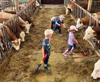 Bei strahlendem Sonnenschein wurden die Kindergartenkinder und ihre Familien herzlich von der Bäuerin empfangen, die gleich zu Beginn mit allen eine fröhliche Hofrunde drehte. Schon hier spiegelte sich die Vorfreude in so manchem leuchtenden (Kinder-)Auge wider.