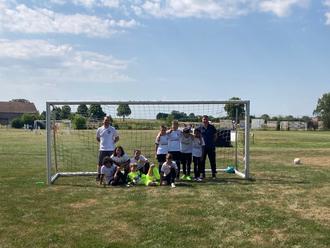 Kurz nach dem 11 Uhr-Anpfiff, in der dritten Minute, eröffnete Moritz H. das Spiel mit seinem ersten Tor. Nick M. doppelte zur dreizehnten Minute zum 2:0 und Isaiah C. legte in der 26.Minute zum 3:0 nach. Beide Teams hielten sehr gut bei den Temperaturen stand, allerdings war die Halbzeitpaus im Schatten durchaus nötig.