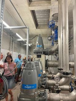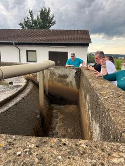 Die Teilnehmer starteten am ersten Zuflussbecken, das mit großen Pumpen im zweigeschossigen Keller ausgestattet ist. Weiter ging es zu den Klär- und Schlammbecken und schließlich zum runden Abschiebebecken, bevor das gereinigte Wasser wieder in die Schmutter geleitet wird. Auch der Weg des Schlamms und der restlichen Feststoffe wurde detailliert erläutert. Frau Otterbein erklärte zudem, was bei Starkregenereignissen passiert und wie mit dem zusätzlichen Wasser umgegangen wird.