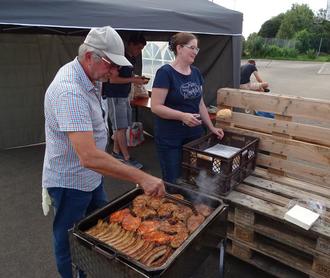 Bratwürste und Steaks werden gegrillt