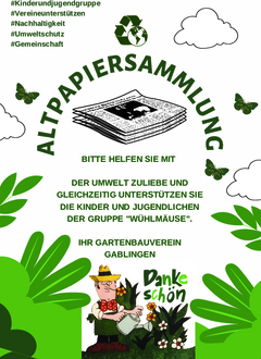 Am Samstag, 22. Juli 2023 führt der Gartenbauverein in den Ortsteilen Gablingen und Siedlung wieder eine Altpapiersammlung durch.