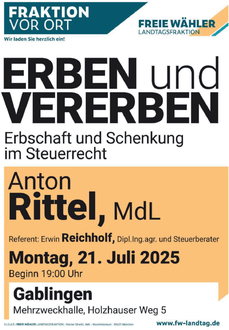 Zu diesem Vortrag laden die Freien Wähler Gablingen und Landtagsabgeordneter, Anton Rittel ein.