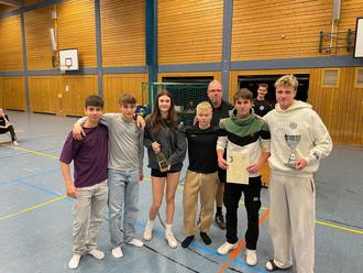 Nach dem letzten Spiel standen dann die Platzierungen fest und die Spielerinnen und Spieler warteten gespannt auf die Siegerehrung. Unser Bürgermeister Jürgen Gilg überreichte den Teams zusammen mit Abteilungsleiter Andreas Buchart die Urkunden und verteilte seine Glückwünsche. Das Schlusslicht, die Net Ninjas, freuten sich über die traditionelle „Rote Laterne“.