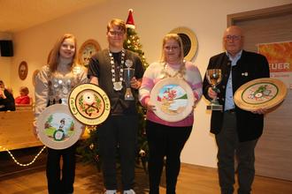 Nach einer kleinen Stärkung konnte das Programm mit der Proklamation der Schützenkönige fortgesetzt werden. In der Schüler und Jugendklasse Luftgewehr gewann Stella Neumann mit einem 3,6 Teiler. Im Bereich Luftpistole Finn Neumann mit einem 5,5 Teiler. In der Schützenklasse Luftgewehr konnte sich, zur Überraschung aller, noch ein Familienmitglied durchsetzen. Janine Neumann gewann die Königswürde mit einem 4,0 Teiler. Das hatte sie sichtlich nicht erwartet. Schützenkönig der Auflageschützen wurde Josef Seemüller mit einem 3,1 Teiler. Die scheidenden Könige wurden zeitgleich mit einem Schokoladenpräsent verabschiedet.